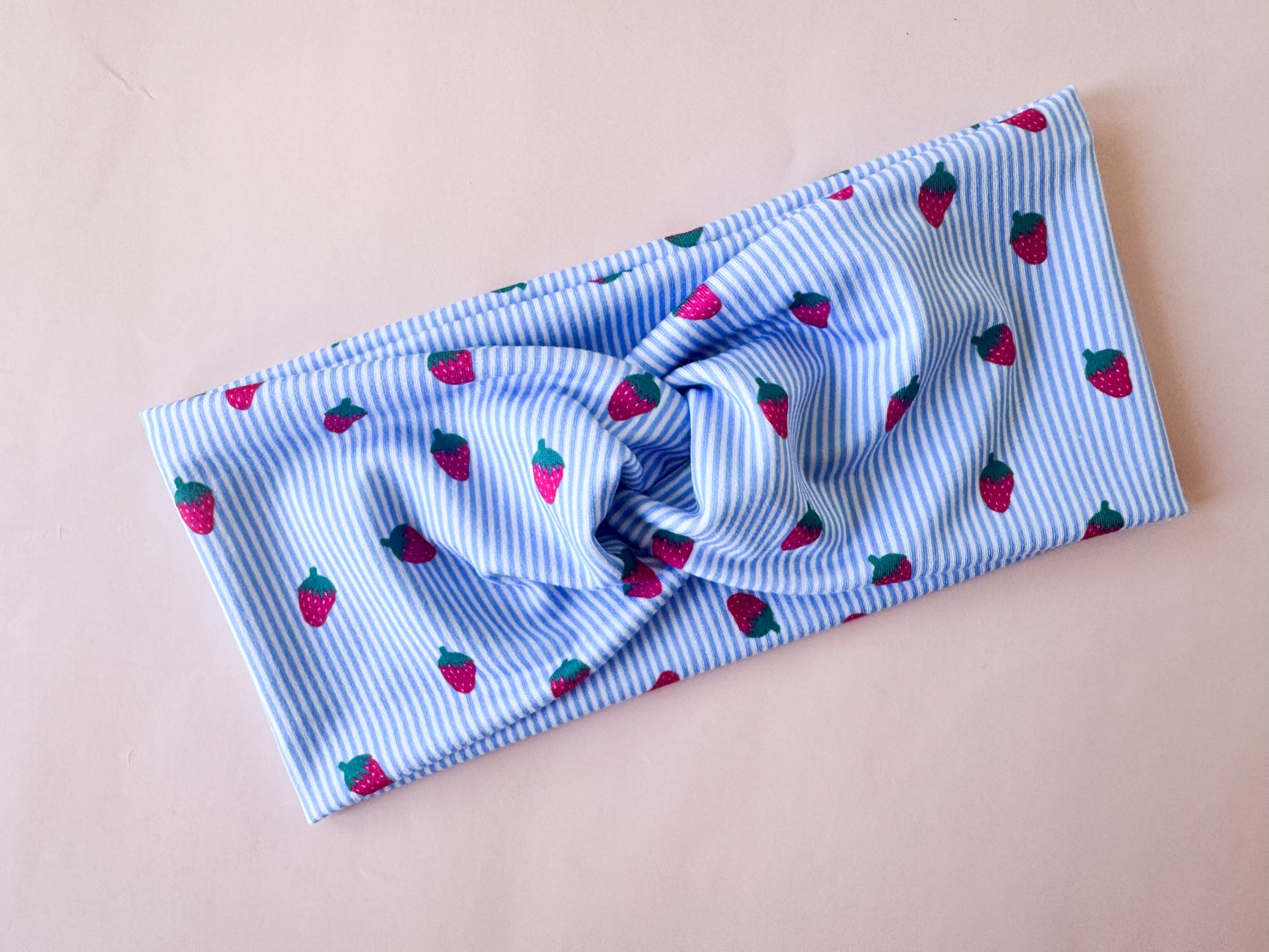 New Blue Pinstripe Strawberries Headband